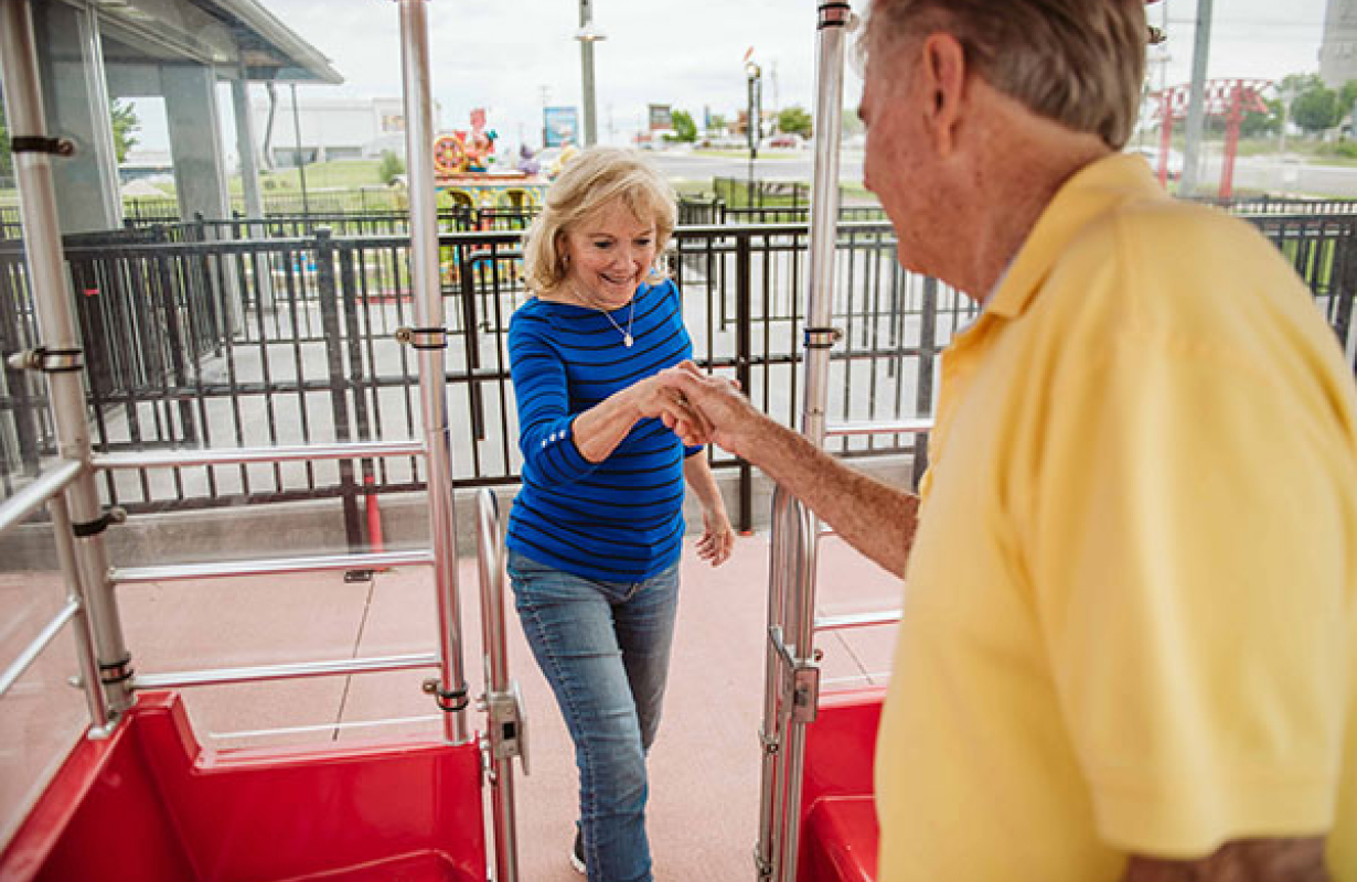 Guests with difficulty transitioning between stationary platforms and moving platforms should see an attendant for alternate boarding.