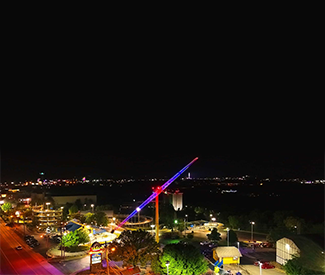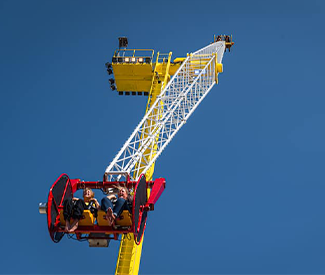Sitting on a 10 foot platform, Skyscraper's base tower stands 80 feet tall, and the windmill-style propeller arms will extend to 170 feet tall at their maximum height, with a maximum speed of 60 miles per hour. At night Skyscraper features LED light, enhancing the ride experience.